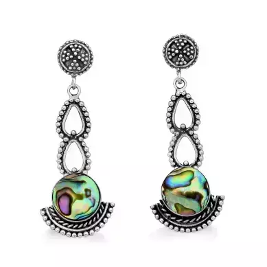 Brinco gotas com abalone na ponta em prata envelhecida - Joia em prata 925